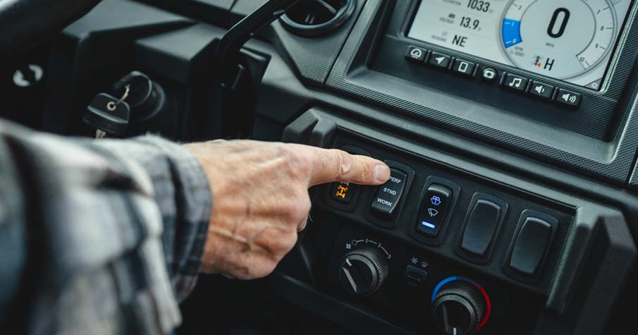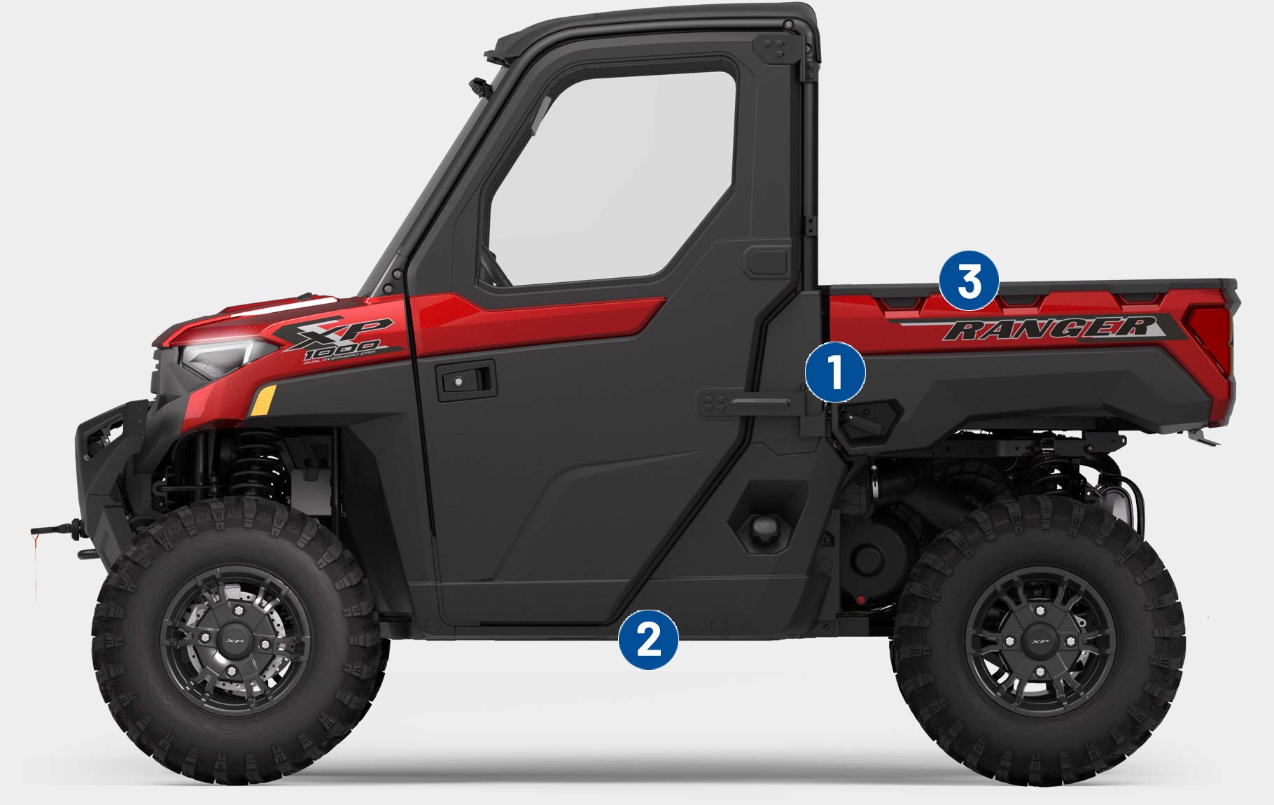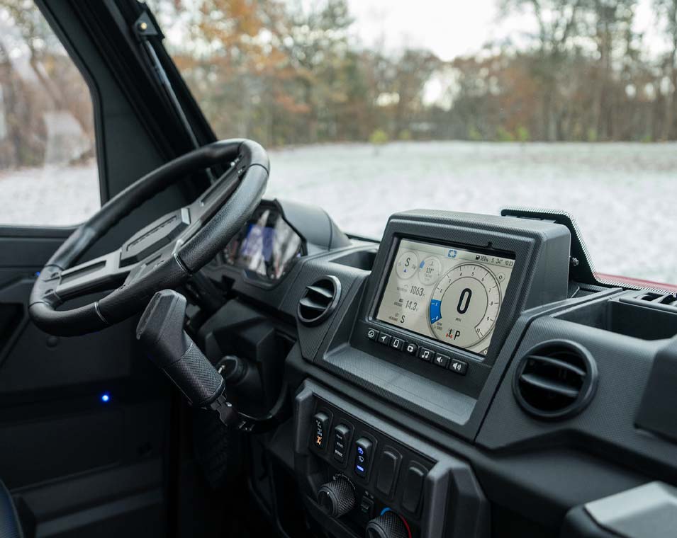 Premium Pro-Shield Cab; Doors with Powered Front Windows; Tip-Out Windshield with Wiper; Rear Glass Panel; Factory-Installed Heat, AC, Defrost; Rearview Mirror; Premium Steering Wheel and Interior Accents; NorthStar Tailgate Badge; Front Bumper with Integrated Winch, Plow & LED Mounts; Premium Cut & Sew Seats with Contoured Seatbacks and Embroidered Polaris Branding; Polaris HD 2041 kg Synthetic Rope Winch with Autostop and Wireless Remote; Polaris Pulse Electrical System (6-Position) Underhood Busbar and 6-Position Roof Busbar; 12V Accessory Outlet; Battery Trickle-Charging Outlet; USB Outlet