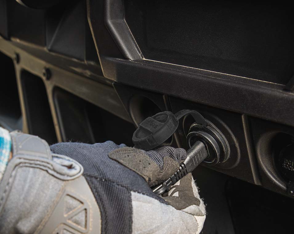 Dual-sweep Analog Dials w/ 4" LCD Rider Information Center: User Selectable Blue/Red Backlighting & Brightness, Programmable Service Intervals, Speedometer, Tachometer, Odometer, Tripmeter, Clock, Hour Meter, Gear Indicator, Fuel Gauge, Coolant Temperature, Voltmeter, Service Indicator and Codes, Seat Belt Reminder, 2 DC Outlet, USB Charge Port